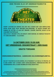 Graag nodigen wij u uit voor een prikkelende, humorvolle voorstelling over verduurzamen en energie besparen door Henry Lootens en Dennis van der Meij (enregietheater.nl).